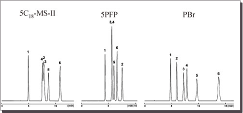 | 流动相 | 5C18-MS-II, 5PFP: Methanol/ H2O = 80/20 PBr: Methanol |
