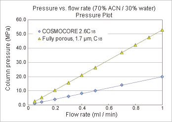 COSMOCORE 2.6C18 칼람은 다른 코어 - 쉘 칼람과 비교하여 더 좋은 분리능과 높은 머무름 시간이 특징입니다 .